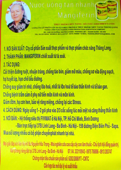 còn được phối hợp với hoạt chất mangifirin chiết xuất từ lá xoài mà các loại
